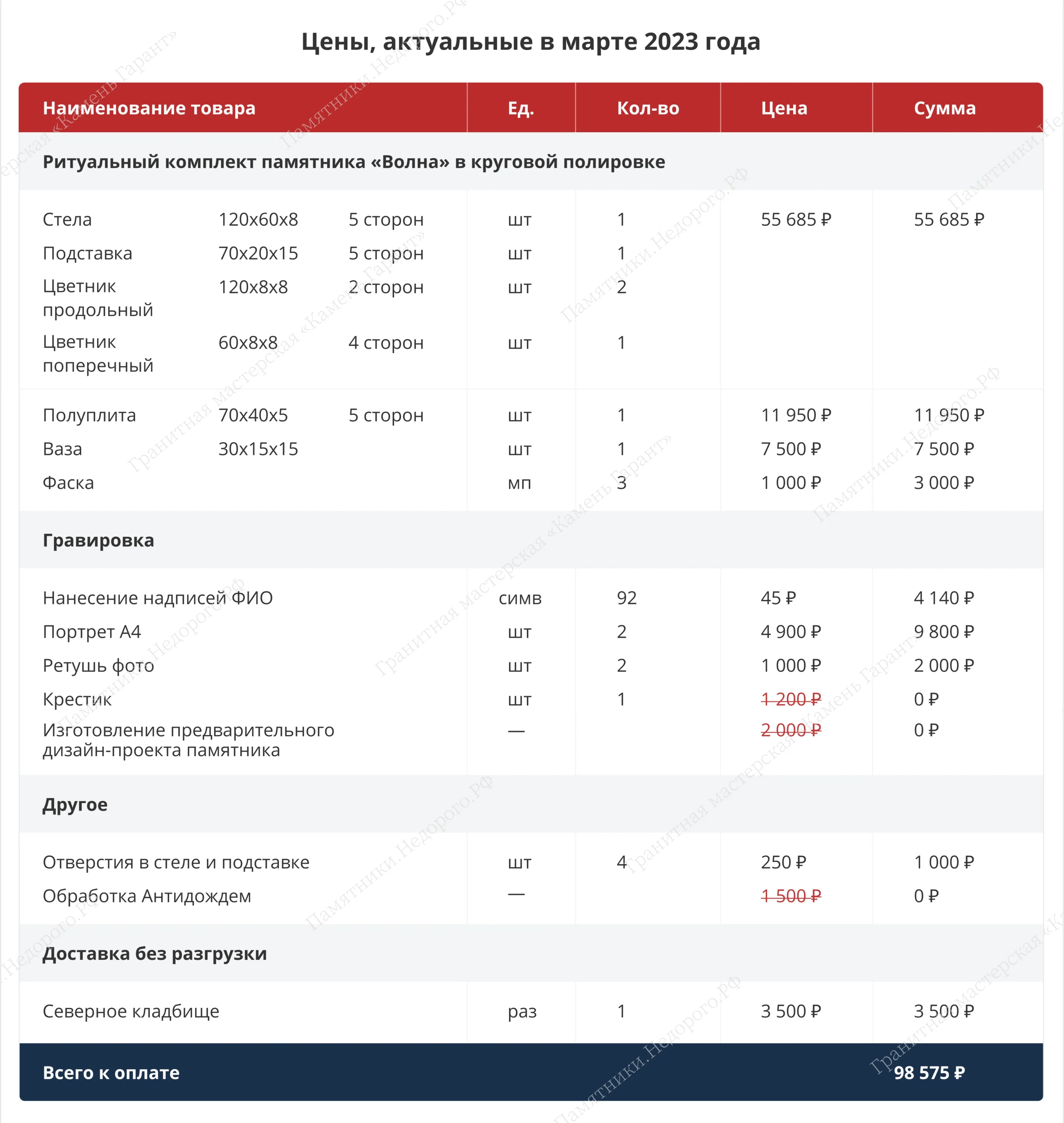 Готовый памятник может бесплатно храниться у нас на складе до одного года.