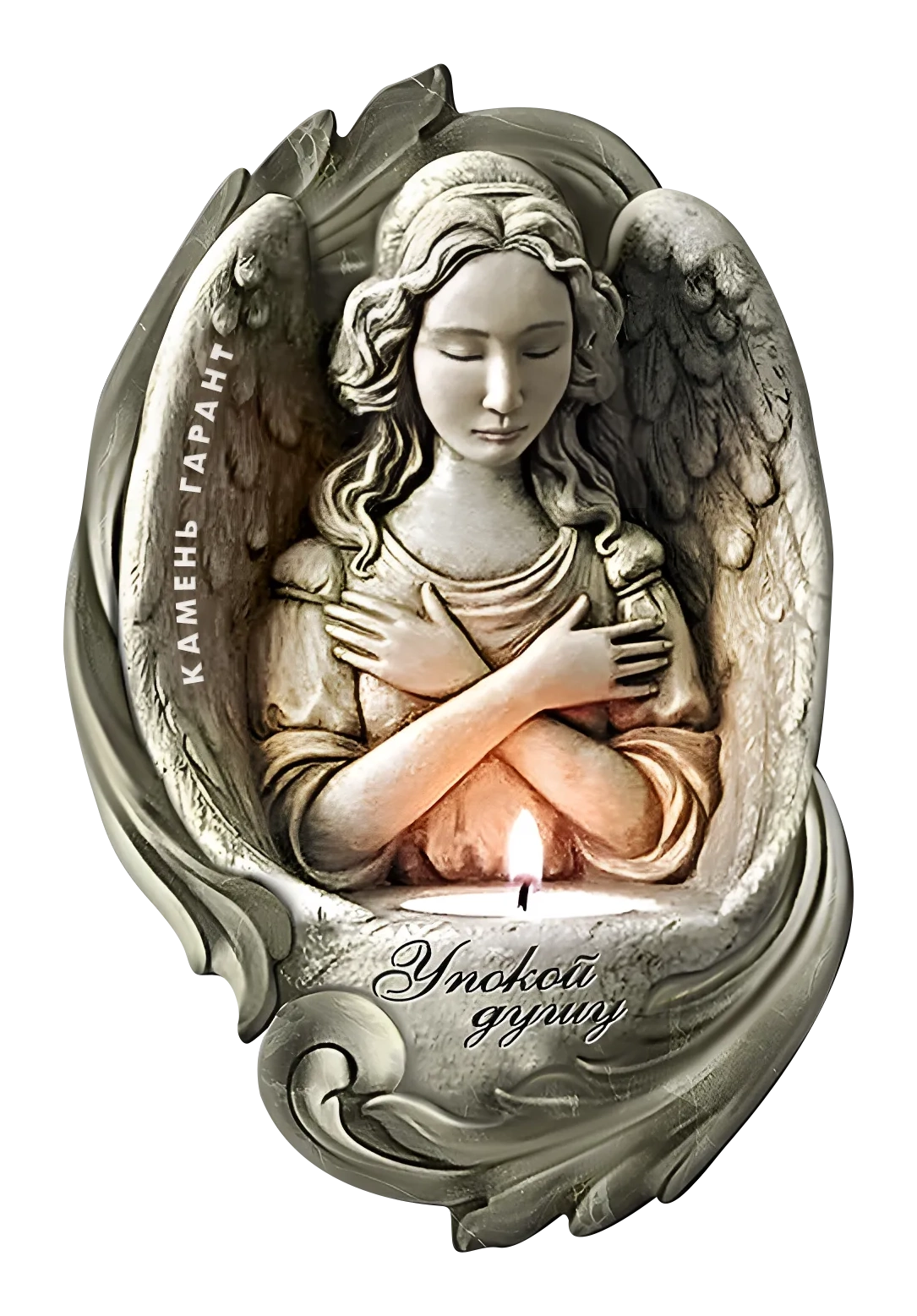 Изображение, напечатанное на керамограните, получается глянцевым. Сам медальон довольно тяжелый, поэтому его устанавливают в глубокую нишу.