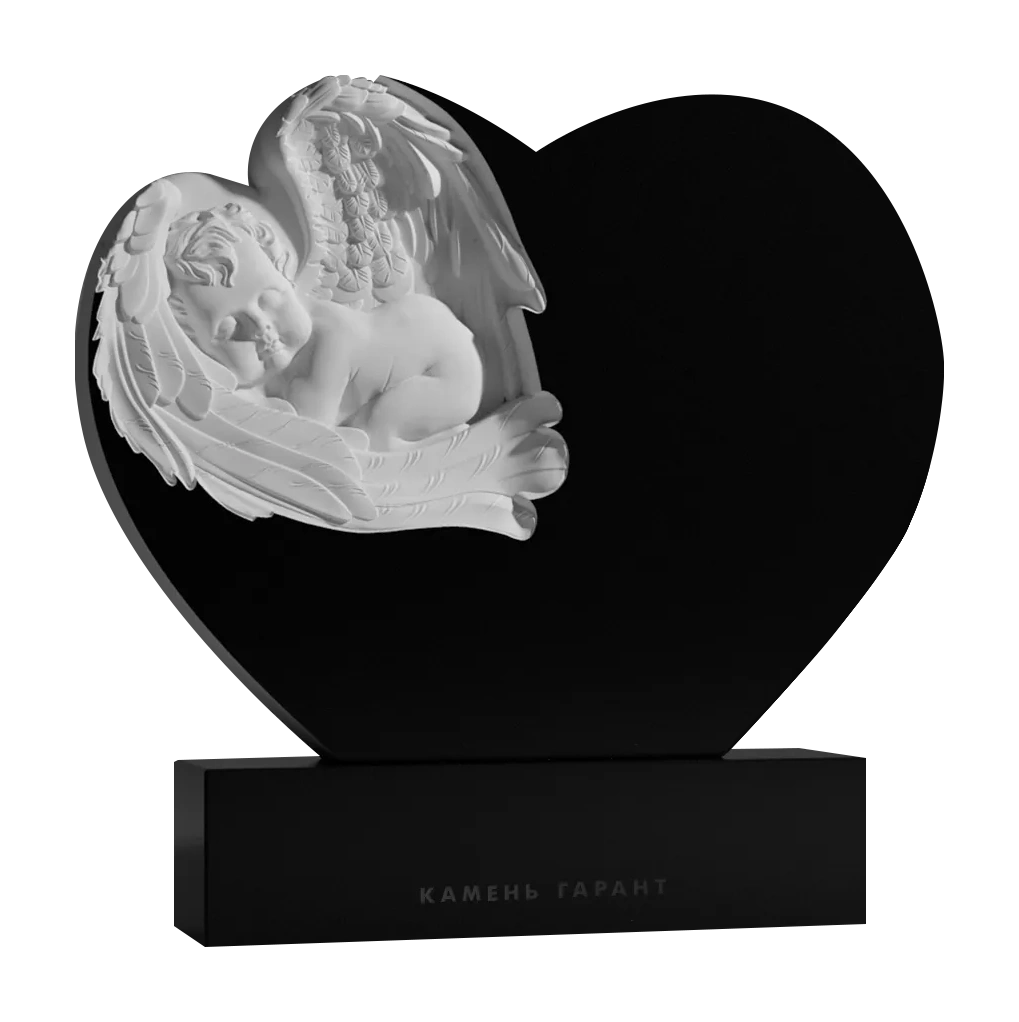 Памятник из чёрного гранита Ангелочек в сердце