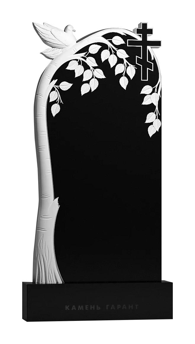 Памятник из чёрного гранита Голубка в березовых ветвях