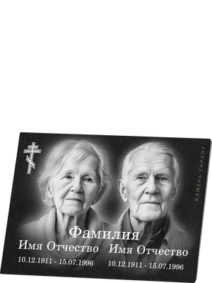 Гранитная табличка с портретами и крестом