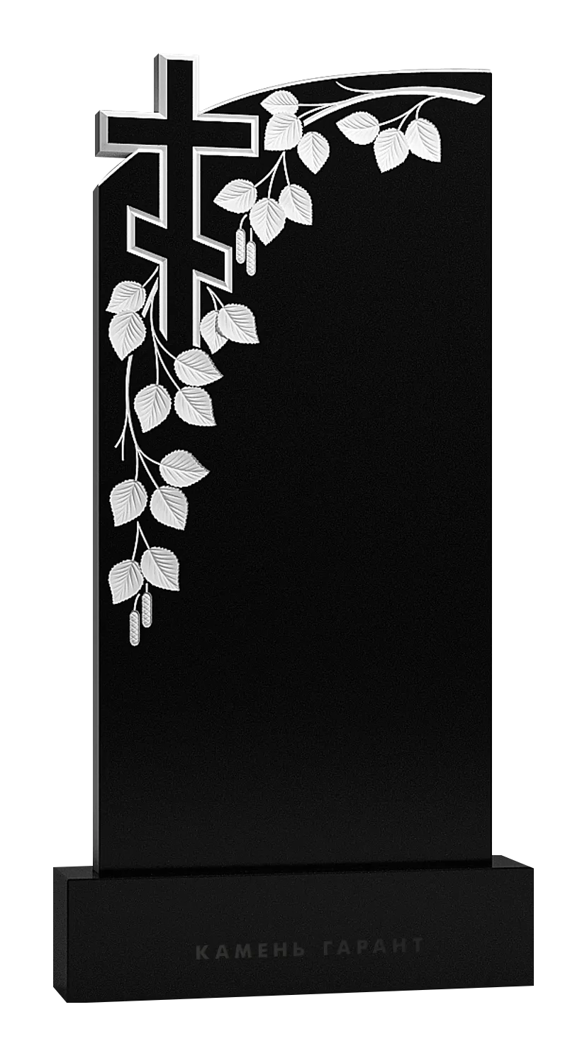 Памятник из чёрного гранита Крест и березовая ветвь