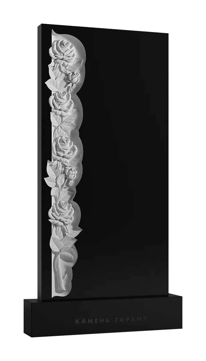 Памятник из чёрного гранита Резные розы