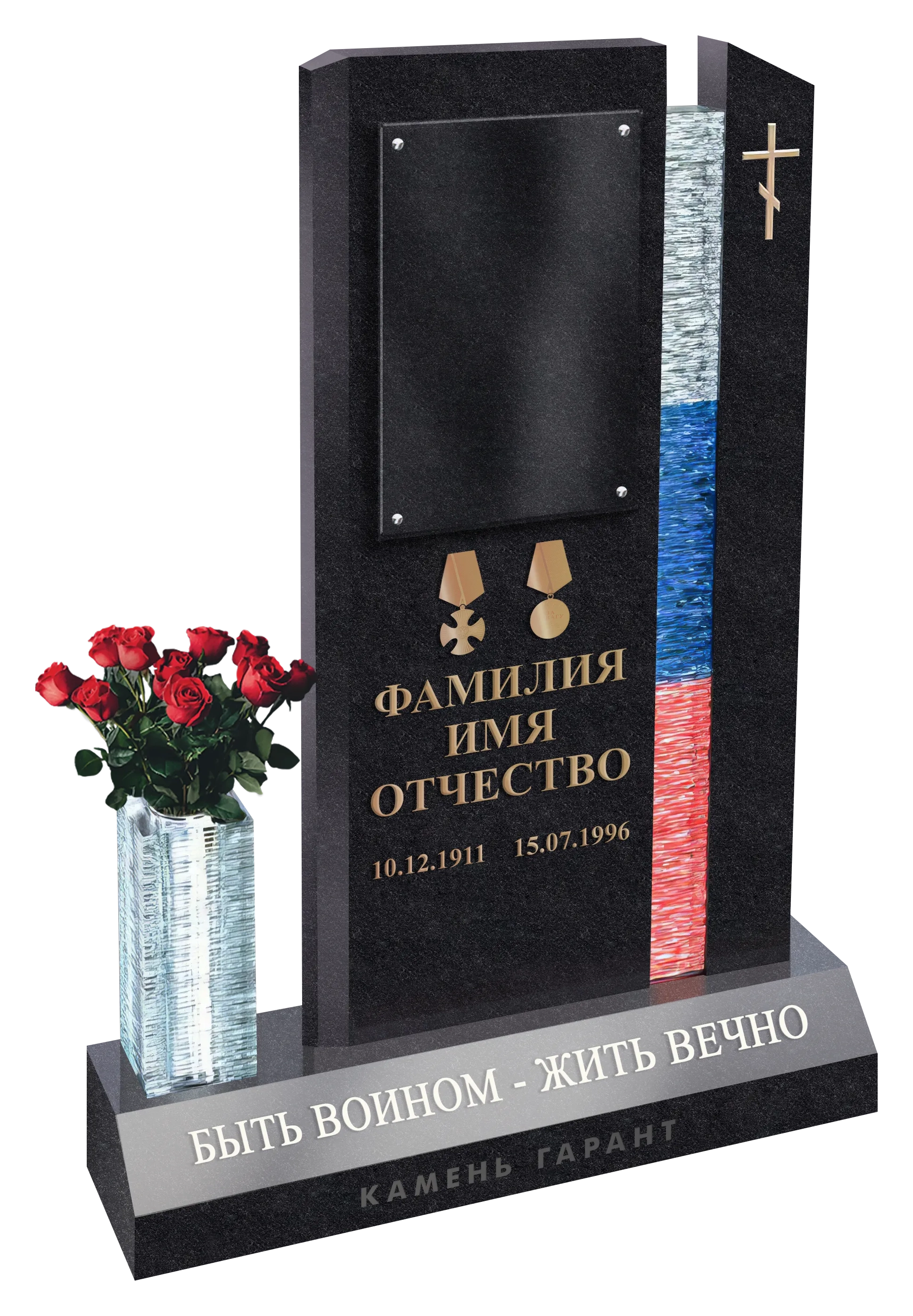 Памятник из гранита со стеклом Вечная память с вазой осветленной Прямая