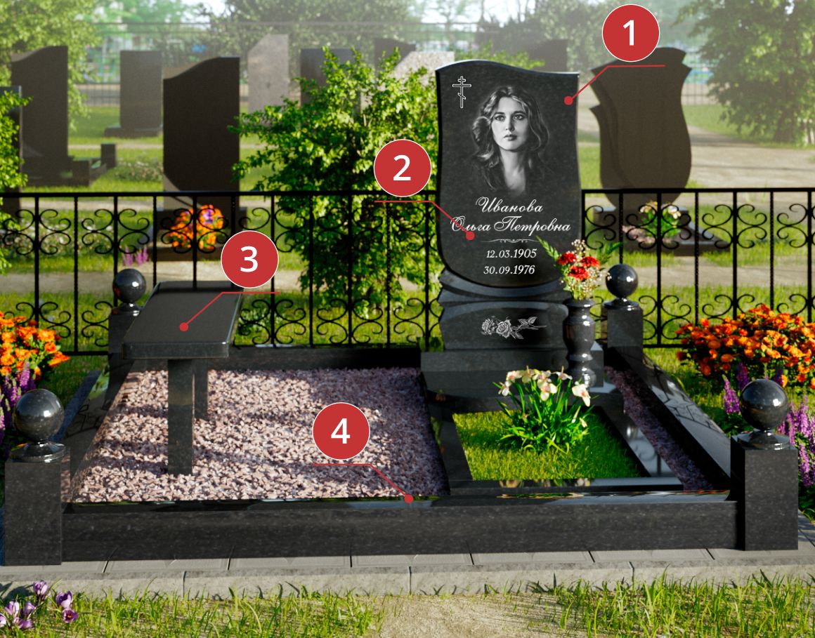 - Горизонтальные надгробные плиты, позволяющие создать целостную композицию на месте захоронения