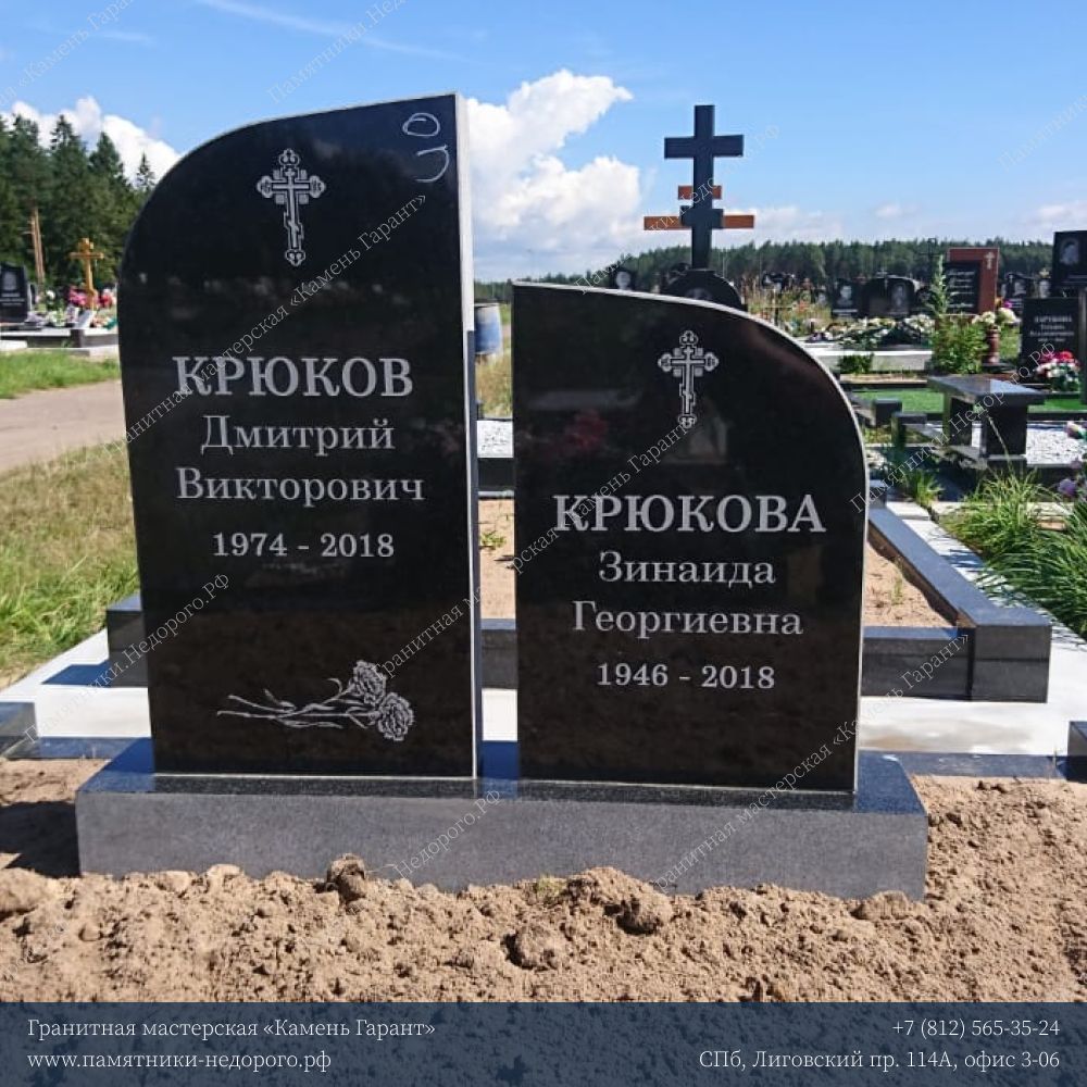 - Двойные памятники для семейных захоронений с возможностью размещения нескольких портретов