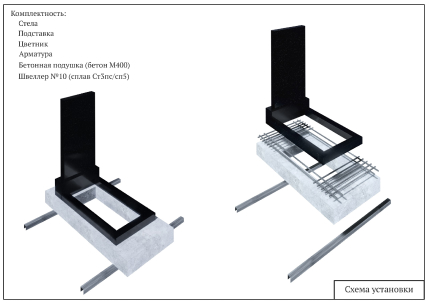 - Когда бетон полностью застыл, «надеть» стелу на металлические штыри, которые специально для этого вмонтированы в подставку. Так элементы прочно зафиксируются между собой