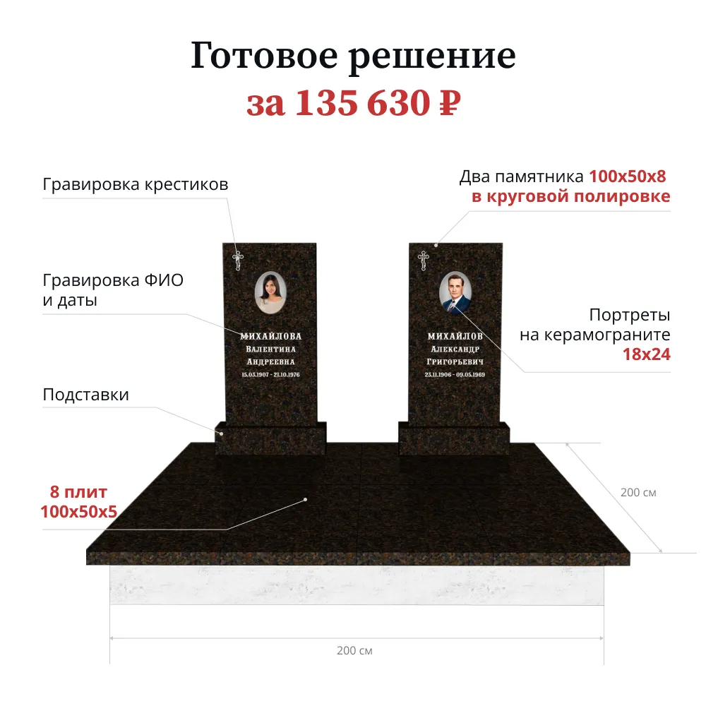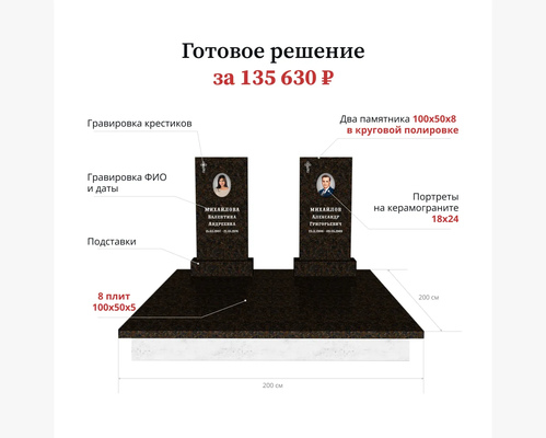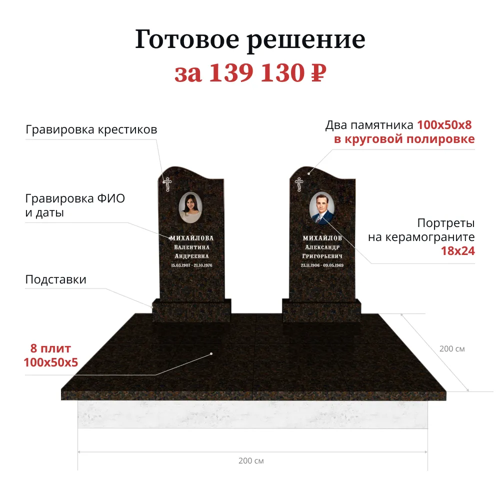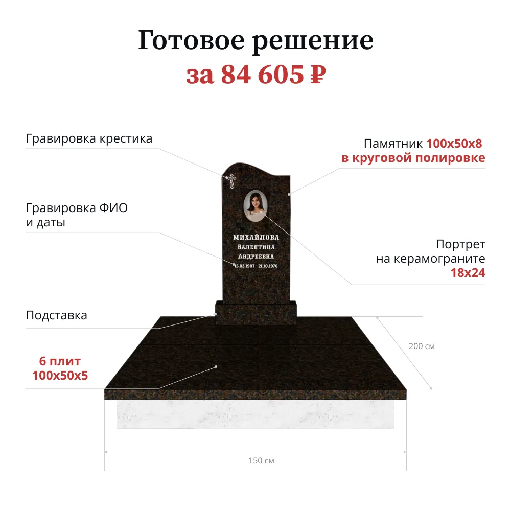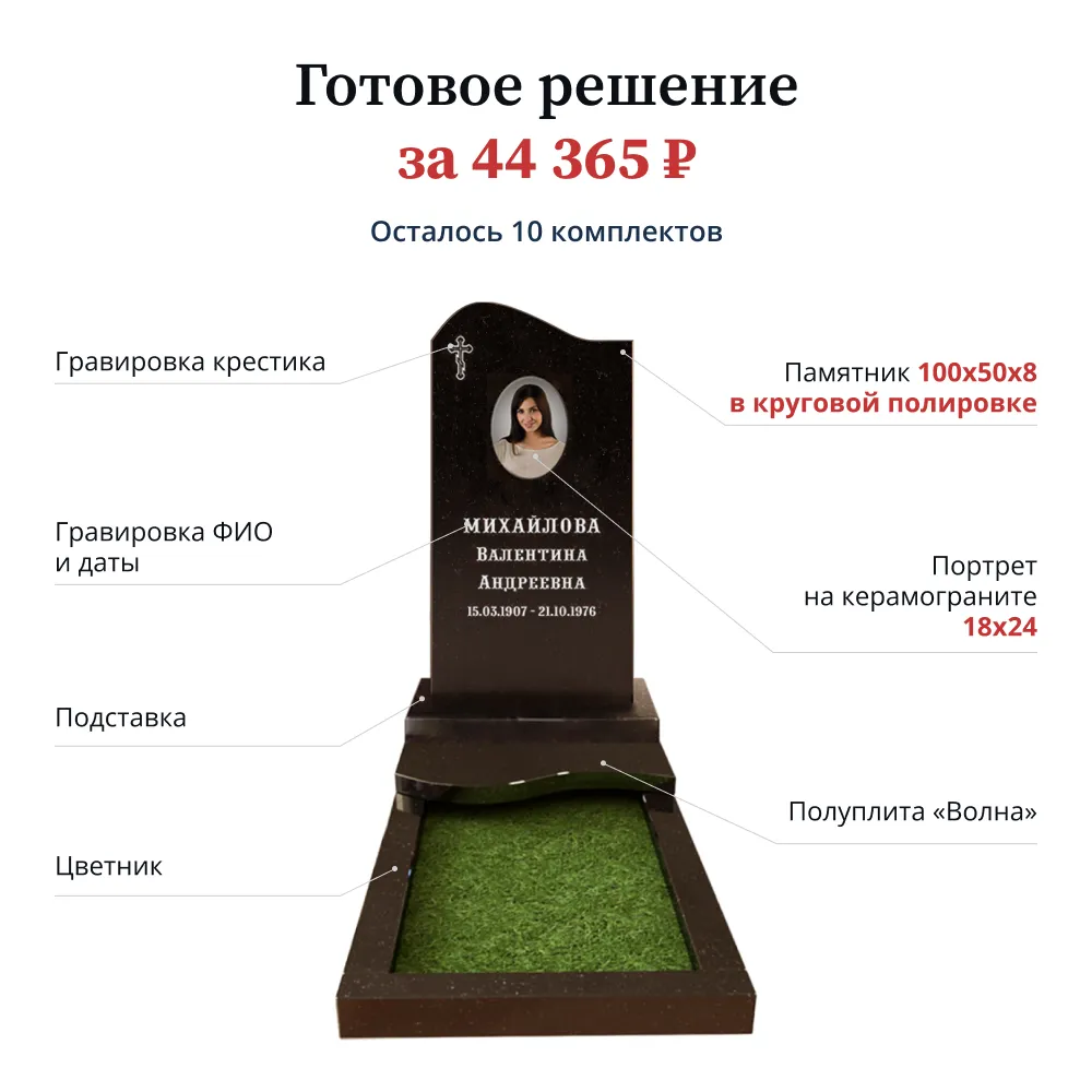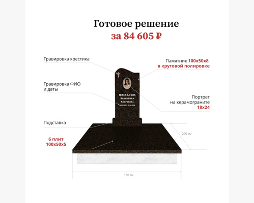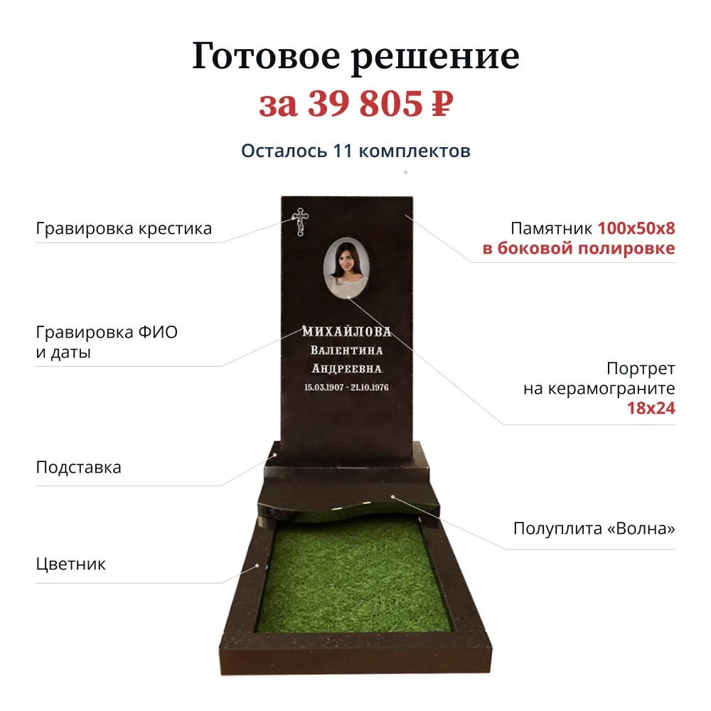 Памятник «Стандарт» 100х50х8 лицевая полировка цветник и подставка входят в стоимость